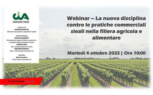 Martedì 4 ottobre alle ore 10.00 si terrà il webinar dedicato alla nuova disciplina contro le pratiche commerciali sleali nella filiera agricola e alimentare.