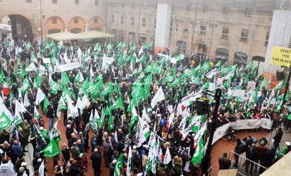 Una mobilitazione straordinaria e unitaria di agricoltori, lavoratori del settore e di tutto il mondo economico e politico del Nord Italia. Oggi sono scesi in piazza a Ferrara 300 trattori e oltre 5000 produttori provenienti da tutte le province dell’Emilia-Romagna, ma anche da Veneto, Trentino Alto Adige, Piemonte, Friuli Venezia Giulia, per chiedere risorse e azioni di sostegno concrete per un settore in crisi profonda. La manifestazione, voluta e organizzata da Agrinsieme Ferrara – il coordinamento di Cia – Agricoltori Italiani, Confagricoltura, Copagri e Alleanza delle Cooperative Agroalimentari – è iniziata con un corteo di trattori agricoli arrivati in città da tutta la provincia di Ferrara ed è proseguita con il lungo e animato corteo di agricoltori, occupati in agricoltura, rappresentanti dei sindacati, del mondo economico ferrarese e dei sindici del territorio, che ha percorso le vie della città fino alla piazza principale di Ferrara dove si sono tenuti i discorsi degli organizzatori e del presidente della Regione Emilia-Romagna, Stefano Bonaccini.