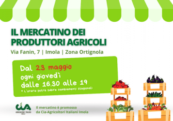 Vuoi gustare frutta e verdura di stagione dal campo alla tavola? Dal 23 maggio, tutti i giovedì dalle 16.30 alle 19.00, torna il “Mercatino dei produttori agricoli” a Imola, in via Fanin 7 (Zona Ortignola). Ill mercatino è promosso da Cia-Agricoltori Italiani Imola e ha l’obiettivo di proporre ai consumatori i prodotti degli agricoltori del territorio, dalla frutta e verdura di stagione, ma anche miele, marmellate, uova e gli altri prodotti che arrivano direttamente dalle aziende. Ricordiamo che nel corso dell’estate gli orari di apertura del mercatino potranno subire variazioni.
