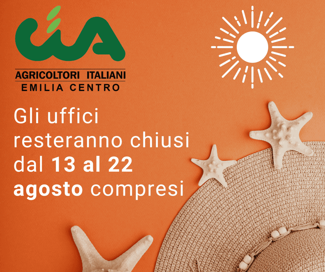 Chiusura estiva Scritto il 1 Agosto 2025. Pubblicato in Comunicati stampa - Emilia Centro. La Cia Emilia Centro avvisa che gli uffici resteranno chiusi per le ferie estive dal 13 al 22 agosto compresi. Buona estate! Condividi:Fai clic qui per condividere su Twitter (Si apre in una nuova finestra)Fai clic per condividere su Facebook (Si apre in una nuova finestra)Fai clic per condividere su WhatsApp (Si apre in una nuova finestra)Mi piace:Mi piace Caricamento... Correlati chiusura estiva, ferie Precedente Successivo
