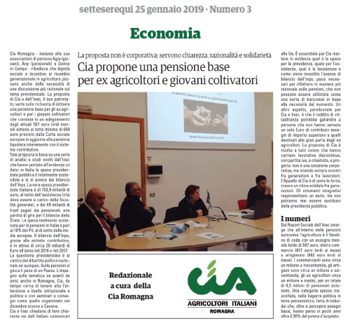 Setteserequi del 25 gennaio 2019: “Cia propone una pensione base per ex agricoltori e giovani coltivatori”. La proposta non è corporativa: servono chiarezza, razionalità e solidarietà.
