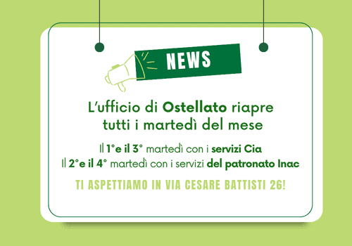L’ufficio sarà aperto tutti i martedì del mese con questa specifica: il primo e terzo martedì del mese saranno erogati i servizi di Cia, mentre il secondo e quarto saranno presenti gli operatori del patronato Inac.