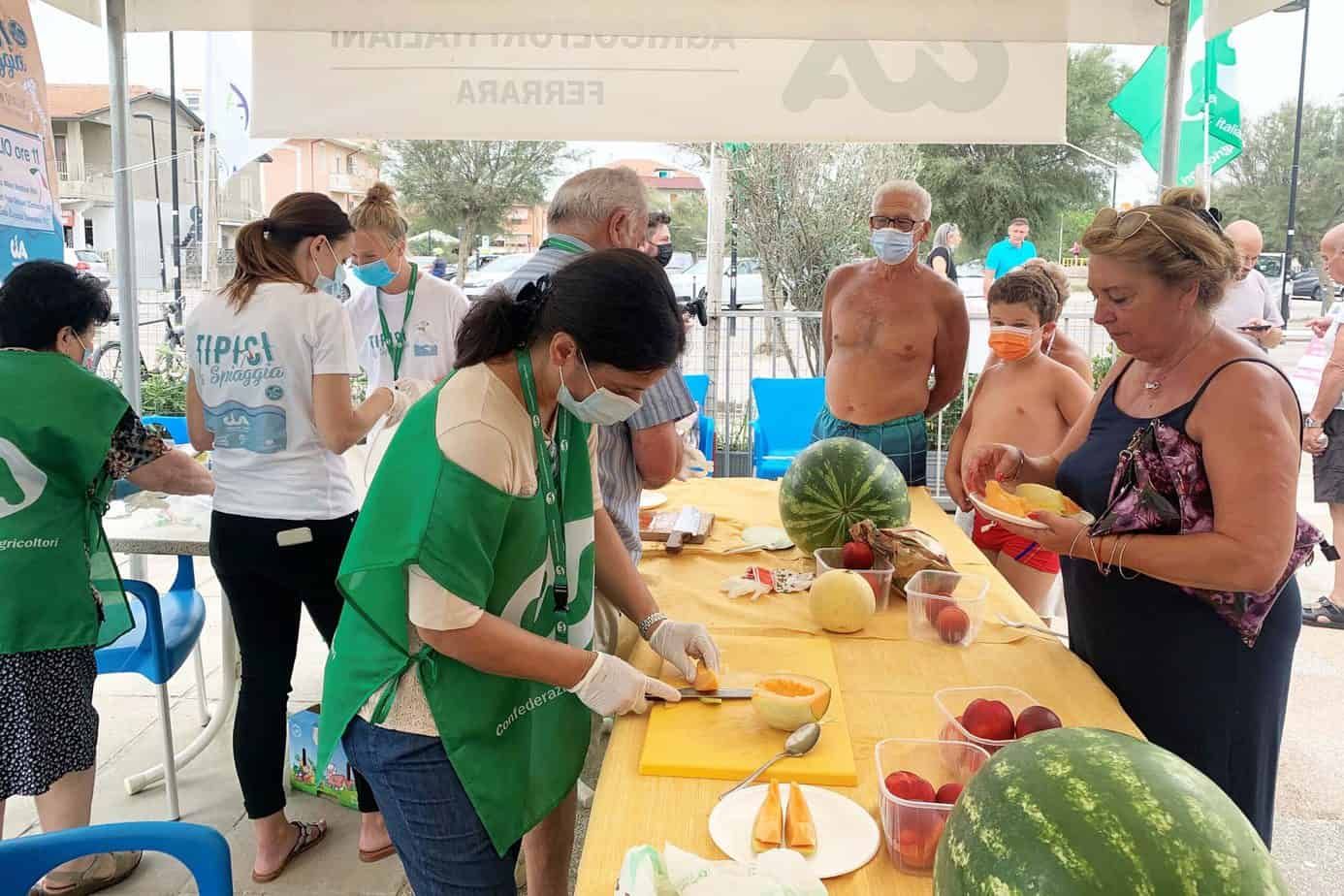 Ferrara, 26 luglio 2021 – Cocomeri, meloni, pesche, l’ottima frutta prodotta dagli agricoltori di Cia-Agricoltori Italiani Ferrara è stata la protagonista dell’iniziativa “TipiCi da spiaggia” che si è tenuta a Porto Garibaldi presso il Bagno Astor oggi (26 luglio ndr) in contemporanea ad altre tre località della Riviera Romagnola: Milano Marittima, Cesenatico e Rimini. La manifestazione, giunta alla seconda edizione, è promossa dal SIB (Sindacato Italiano Balneari) aderente a Fipe/Confcommercio e Cia-Agricoltori Italiani con l’obiettivo di promuovere le nostre eccellenze enogastronomiche e al contempo il nostro litorale, in un connubio perfetto tra mare e cibo.