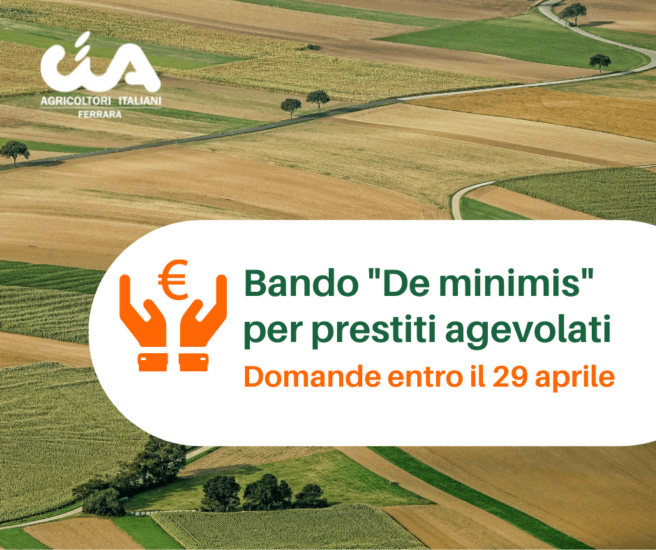 la Regione Emilia Romagna, con Delibera 107 del 31/01/2022, ha aperto il bando regionale “De minimis” 2022 con scadenza al 29 aprile prossimo e che prevede un intervento specifico a sostegno dei produttori agricoli, finalizzato a ridurre il costo del danaro per prestiti a breve e medio termine erogati.